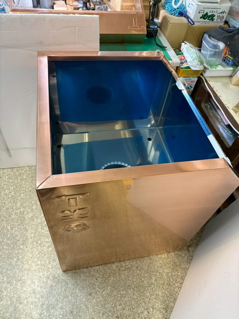 銅板の打ち出しでかなりの手間がかかっていますので、折りつけは慎重になりました、全てが一発勝負‼︎打ち出し、折りつけ、どれかを失敗すればオープンに間に合わないプレッシャーでした‼️