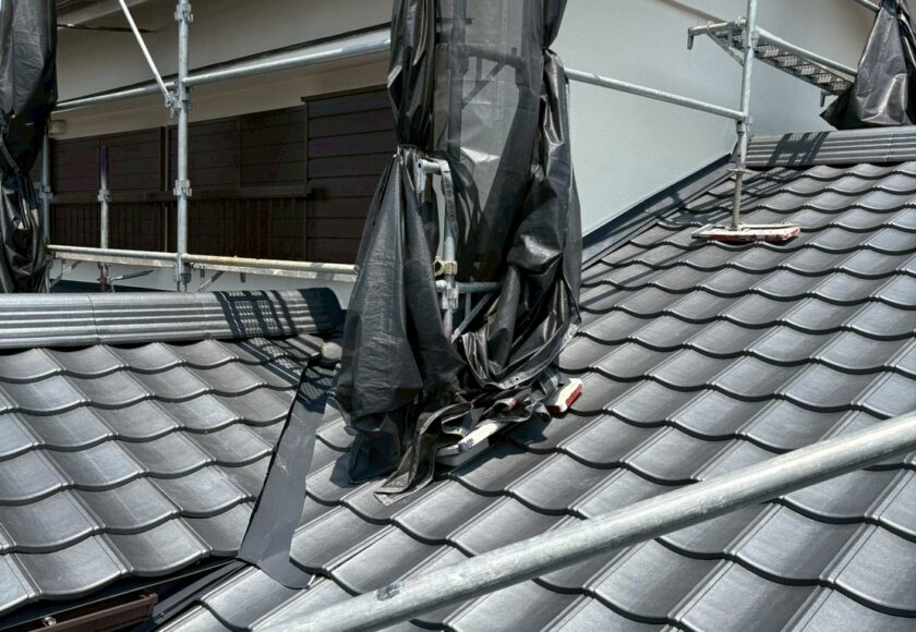 元は日本瓦でしたが、地震などを考え屋根の荷重を軽くしたいと相談を受け、重量感はありますが軽量のケイミュー ルーガー雅を選んで頂きました‼︎